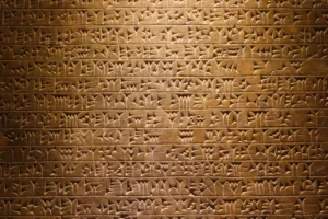 In Sumerian, speech was e-me, and clay was i-mi-like Adam and Eve before the fall. When God bent down and shaped Adam from the dust,